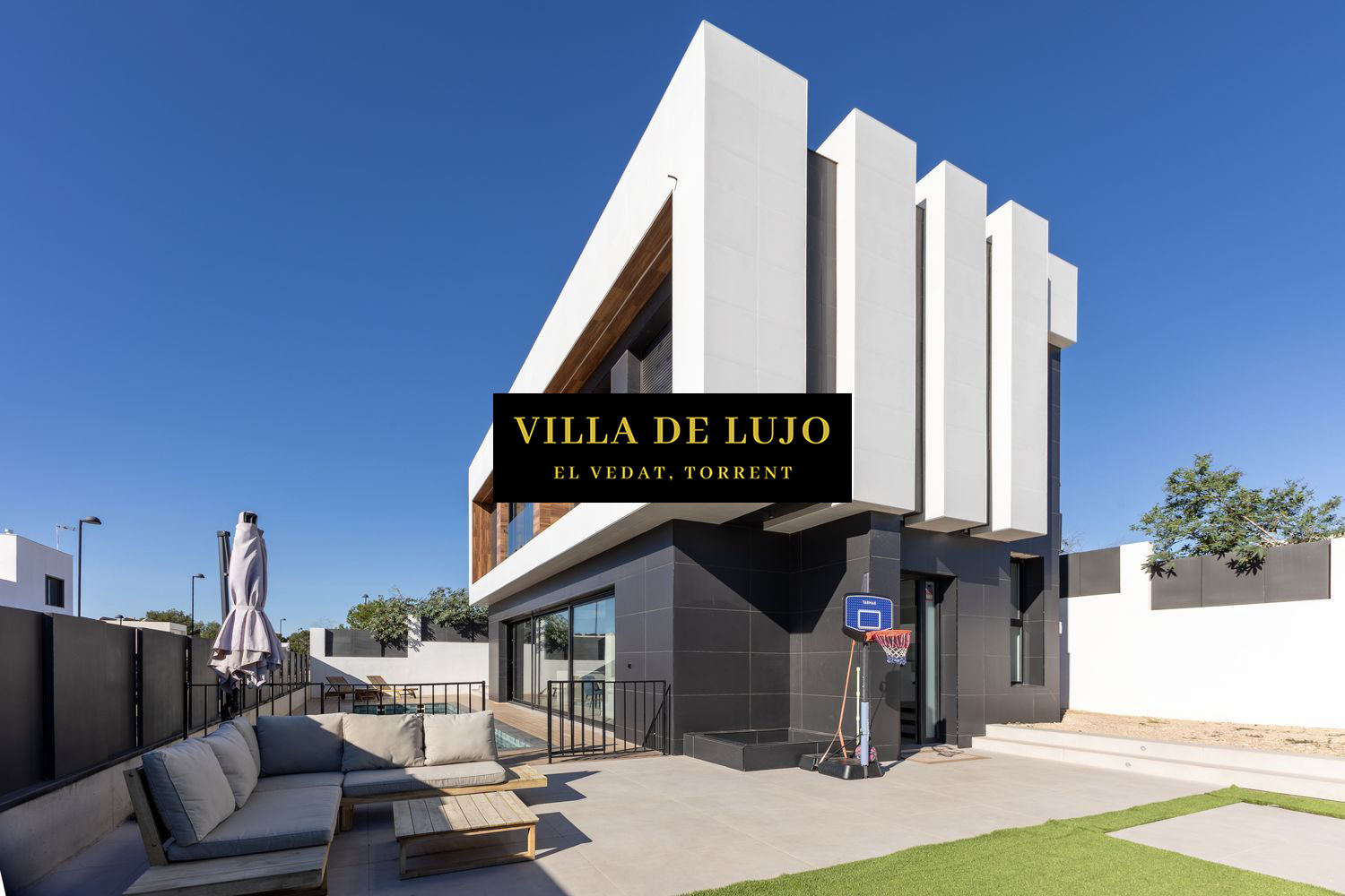 Le mostramos este chalet independiente de líneas contemporáneas y calidades premium, ubicado en la exclusiva zona de El Vedat, urbanización Santa Apolonia en Torrent, Valencia.